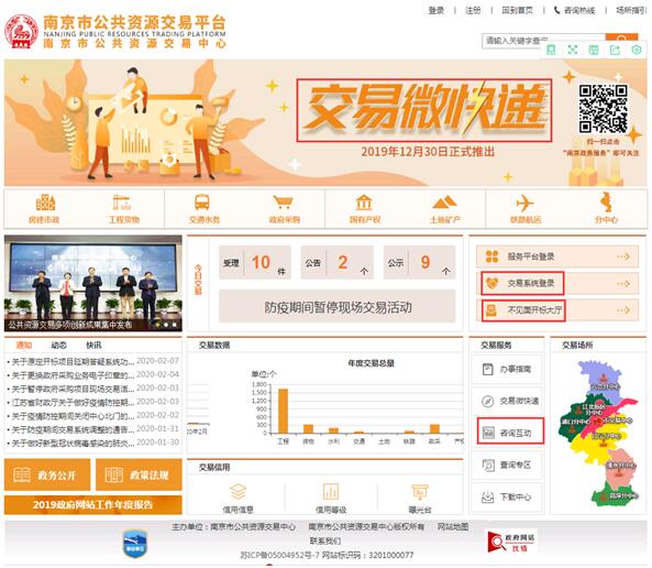 通过“交易系统登录”栏目选择各专业交易系统,上传和下载各类交易文件;选择“不见面开标大厅”栏目,参与开标活动;点击“交易微快递”,查询各类交易事项提醒;通过“咨询互动”栏目,咨询交易过程中需要解决的问题。