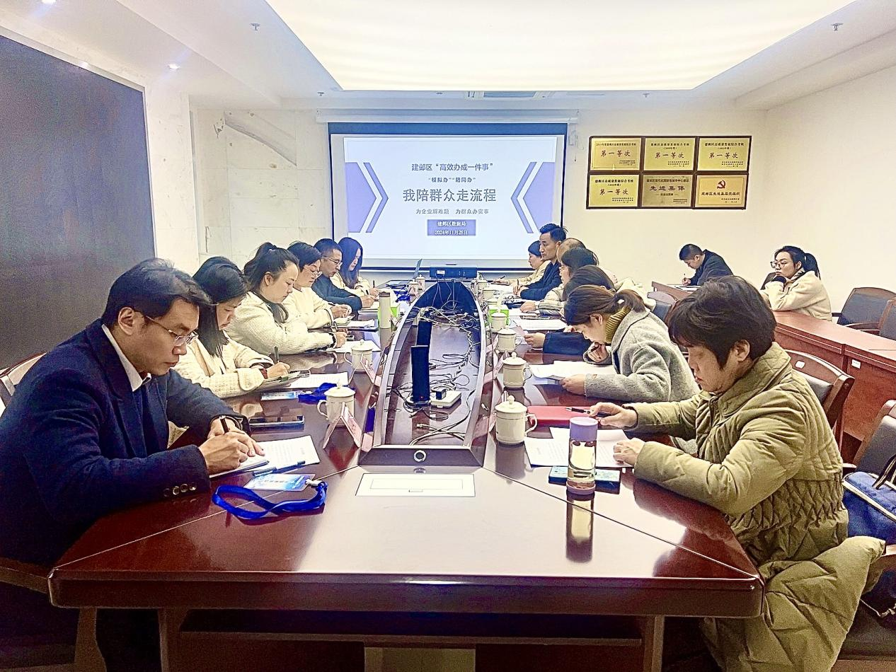 “我想办理‘企业注销一件事’,请问需要准备哪些材料?”“‘企业信息变更一件事’办理流程我不清楚,请详细解释一下?”为有效解决“高效办理一件事”在企业群众视角中发现的问题、堵点、难点,找准政务服务改革创新的着力点和发力点,切实为企业解难题、为群众办实事,2024年11月28日上午,建邺区政务服务中心组织13类“高效办成一件事”牵头单位,区人大、政协、新闻媒体、企业代表作为“政务服务体验员”深入政务服务一线,开展“我陪群众走流程”会议研讨和沉浸式政务服务体验活动。