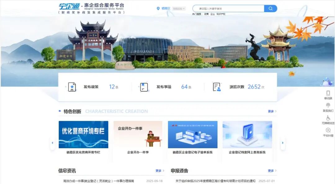 为贯彻落实《关于全面推进惠企政策直达工作的实施意见(修订)》精神,进一步优化营商环境,助力企业发展,栖霞区重点打造“宁企通”区级专区,面向企业用户提供政策专栏、需求申报、服务资讯等服务,构建“政策-企业-服务”闭环生态。