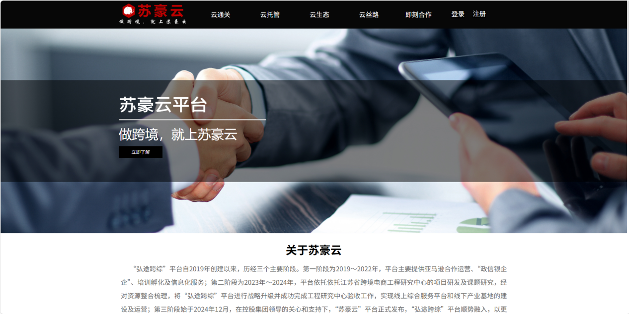 在苏豪控股集团和玄武区各级领导的支持下,“苏豪云”平台基于玄武区与苏豪集团共同打造的中国中亚贸易畅通合作平台而生。平台通过“核心技术+优质服务+生态建设”三位一体模式,以数字技术驱动和优势资源整合,聚焦解决中小企业在跨境贸易中全球市场开拓、供应链管理、品牌打造及合规出海等核心痛点,帮助各地产业带及中小企业低成本、高效率拓展全球跨境电商市场。