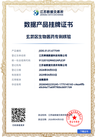 本次上架的三款数据产品为《玄武区绿色低碳专利核验》《玄武区生物医药专利核验》与《玄武区新一代信息技术专利核验》。产品聚焦玄武区相关产业企业的专利信息,具备真实、权威、结构化等特点,可广泛应用于: