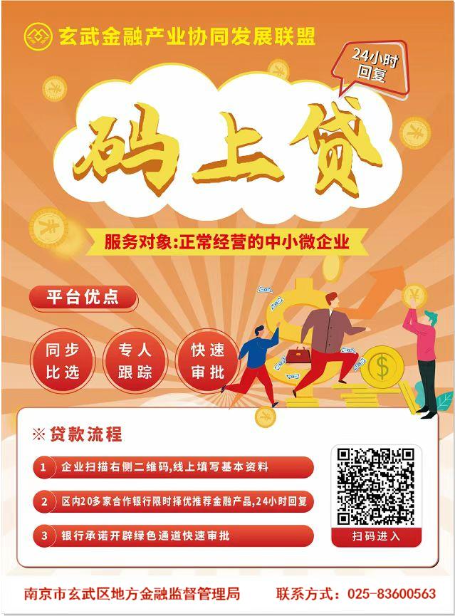 玄武区金融局依托区内金融集聚优势,围绕商贸、文旅、数字经济和生物医药等行业,坚持“小”(面向小微企业)、“快”(强化审批和下款快速)、“活”(担保方式灵活)的服务原则,开发上线“码上贷”平台,积极帮助企业化解融资难题。