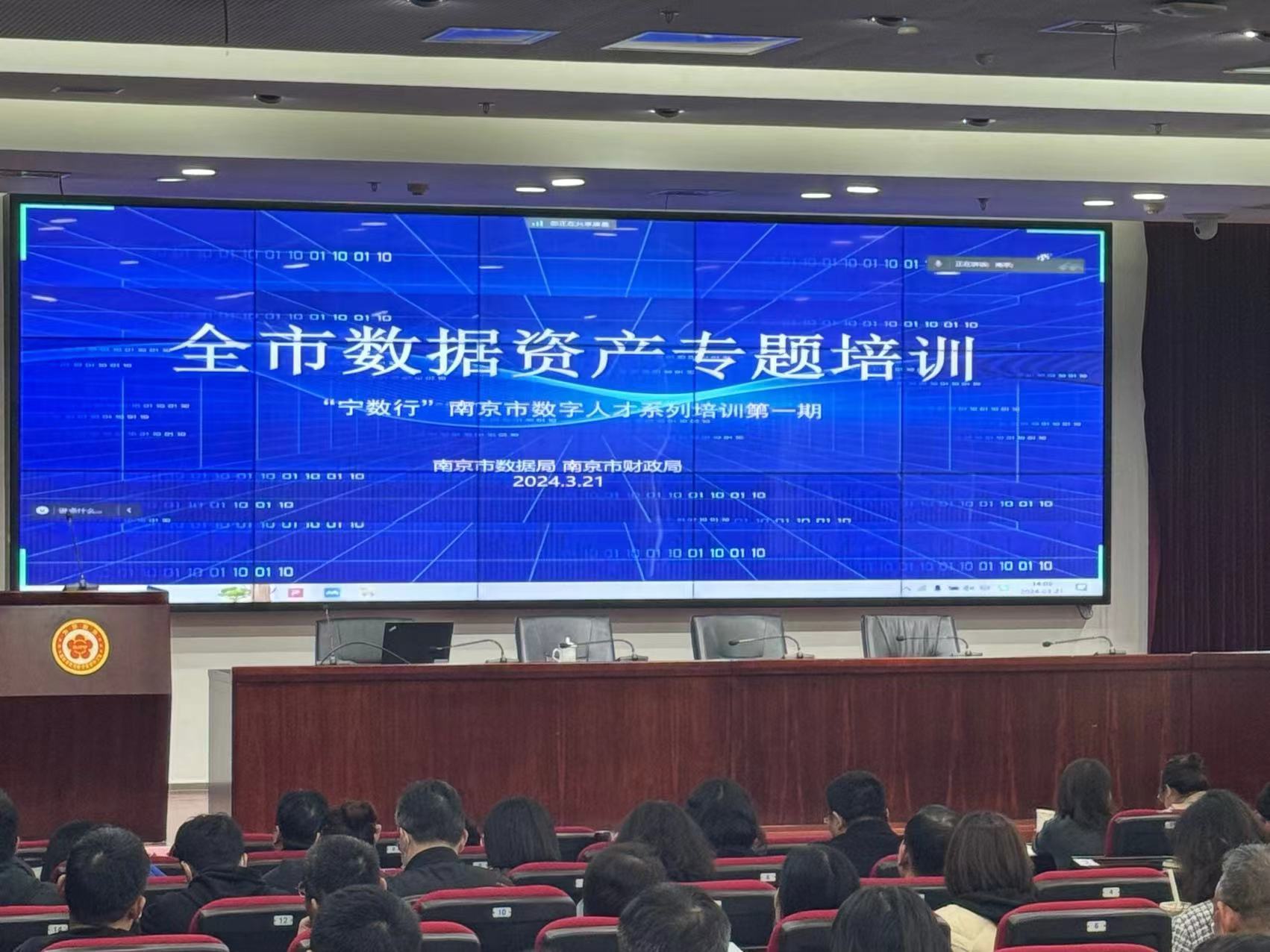 为进一步提升全市政府部门、企业管理者的数字素养和数据思维,加快数字化人才培养培训,助推数据产业和数字经济发展,市数据局制定了“宁数行”数字人才培训行动计划。3月21日下午,“宁数行”首期培训开讲,本次培训由市数据局与财政局共同组织,这是2024年初财政部关于“数据入表”新会计准则实施以来,全国首场由数据、财政两家部门重点围绕“数据入表”、“数据财政”等社会热点联合开展的专场培训,吸引了各区、各部门、各公共机构的200多位负责人踊跃参加。
