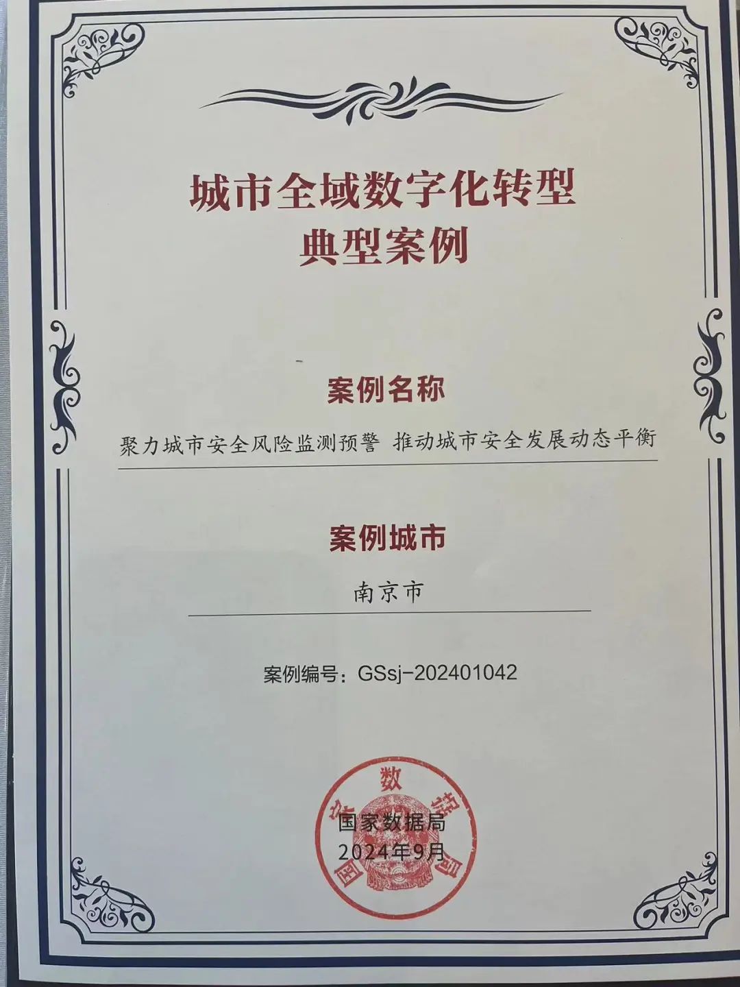 9月12日,国家数据局在重庆召开城市全域数字化转型现场推进会,会上发布了《城市全域数字化转型典型案例》。其中,由南京市数据局选送的南京市应急管理局《聚力城市安全风险监测预警 推动城市安全发展动态平衡》凭借在技术创新、应用实效、社会影响等方面的卓越表现,从全国近300个案例中脱颖而出,成功入选,为全国城市安全提供了一种可复制、可推广的示范样本。