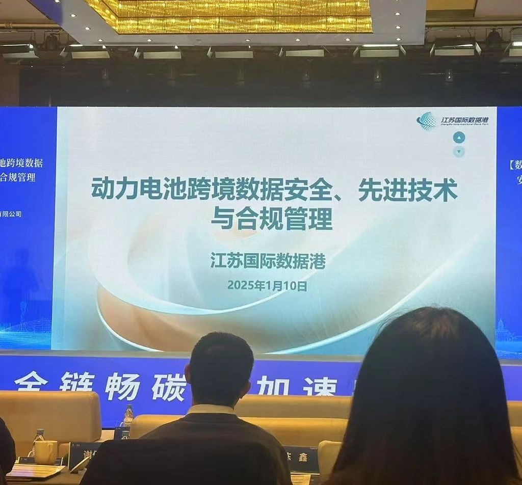 江苏国际数据港受邀参加本次峰会,受聘进入江苏新能源汽车服务池,并进行《动力电池跨境数据安全、先进技术与合规管理》主题分享。分享强调数据出境对国家安全的重要影响,并陈述国内外针对数据跨境流通强化立法与监管的情况;指出当前电池数据出境存在监管空白、对外谈判依据缺乏、数据保护困境、企业出口压力等问题;介绍江苏国际数据港牵头制定的《数据安全技术 动力蓄电池数据分类分级指南》团体标准中,数据分类、分级的规则、方法,一般数据清单与重要数据清单的概念与特征,该标准的特点及应用前景。