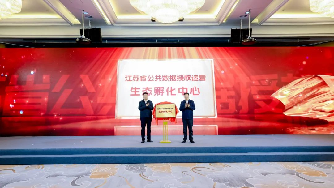 建邺区委书记,市河西管委会党组书记、主任姜宸和江苏省数据集团董事长成晓光共同为江苏省公共数据授权运营生态孵化中心揭牌。