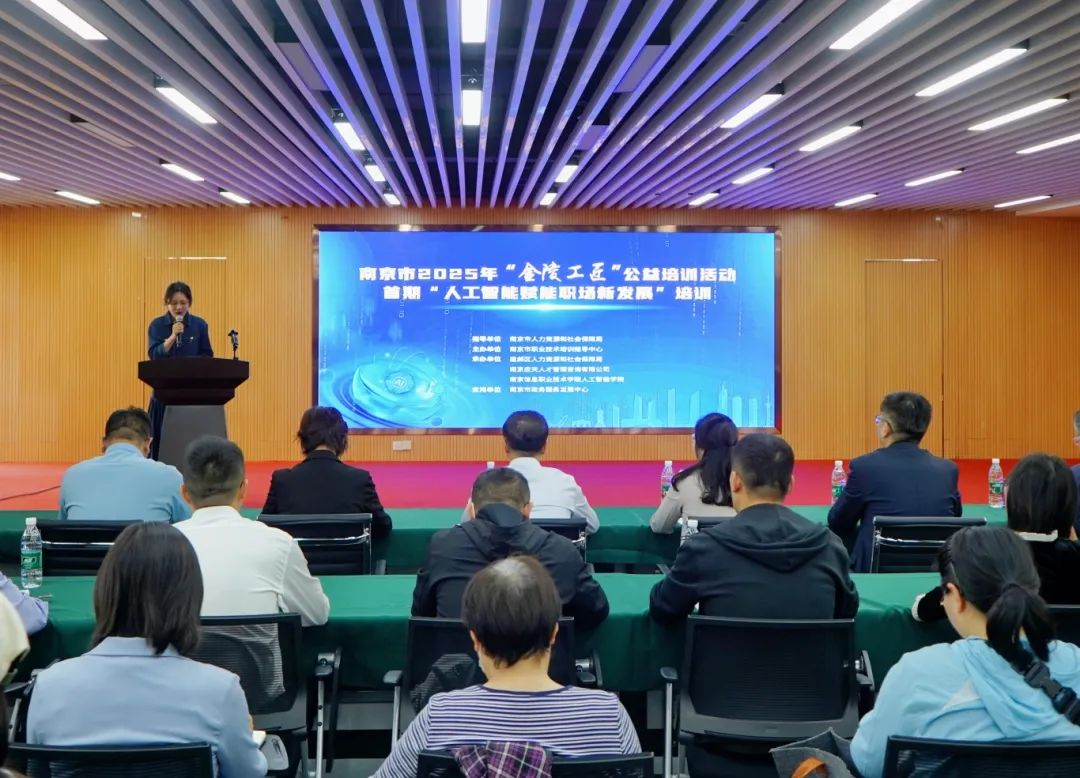 4月28日,由南京市人力资源和社会保障局指导,南京市职业技术培训指导中心主办的南京市2025年“金陵工匠”公益培训活动正式启动,首期培训活动以“人工智能赋能职场新发展”为主题,通过“宁企通”平台线上报名,共吸引了线上、线下超2000名企业职工、高校毕业生及重点就业群体参与。