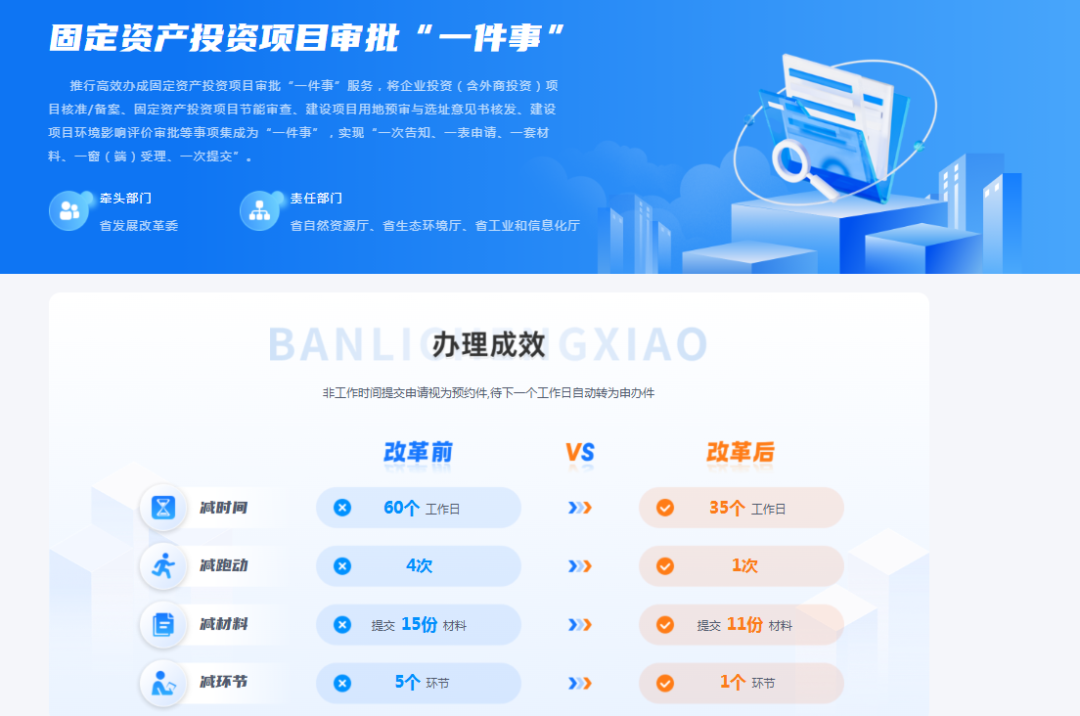 值得一提的是,江北新区在行政审批改革领域的探索不止于此。近期,新区行政审批局同步实现了重点事项清单中全市首个固定资产投资项目审批“一件事”服务落地,目前全市全部五个相关项目均为新区立项备案和节能审查联办案例,占全市比例达100%。该项服务的落地,为新区投资项目审批服务按下“快进键”,与开工“一件事”改革成果相辅相成,共同构建起江北新区高效、便捷的审批服务体系,助力新区营商环境持续优化升级。