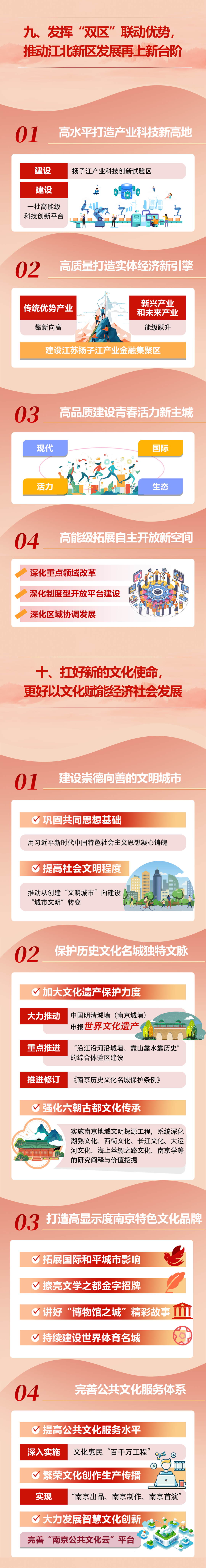 “十五五”时期,南京市经济社会发展的主要目标体现在“一个跃升七个显著增强”,即高质量发展实现新跃升,产业科技创新动能、改革开放推动力、城市功能品质、生态环境承载力、文化软实力、民生幸福获得感、市域现代化治理能力显著增强。